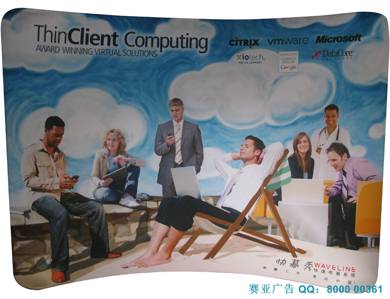 快幕秀展示器材,具有快速、時尚、經(jīng)濟、環(huán)保的特點。適用于展覽、會議、賣場、新產(chǎn)品發(fā)布會等宣傳活動。中美合資,擁有全球領(lǐng)先的設(shè)備工藝及產(chǎn)品研發(fā)設(shè)計,快幕秀有一下特點和優(yōu)勢: 1、安裝快速便捷,無需工具。 2、超寬幅無縫畫面制作技術(shù),畫面平整流暢。 3、防日曬抗紫外線不易褪色,防雨水可洗滌,能夠多次循環(huán)使用,經(jīng)濟實惠。 4、熱升華油墨色彩絢
