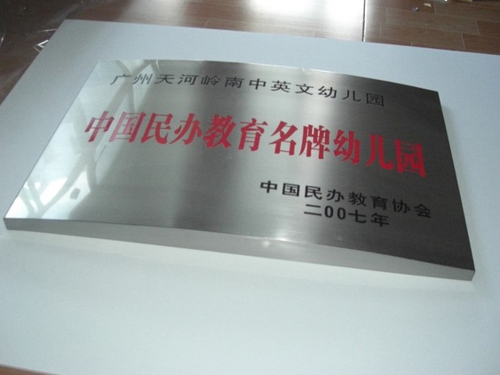不銹鋼、銅可做腐蝕,不做其他材料的腐蝕。不銹鋼銘牌的化學著色美術加工法工藝過程是:不銹鋼制品→絲印→氧化著色→堿處理→成品。 不銹鋼銘牌的蝕刻美術加工法工藝過程是:不銹鋼制品→絲印→蝕刻→堿處理→氧化著色→成品。不銹鋼銘牌的噴色美術加工法的工藝過程是:不銹鋼制品→絲印→蝕刻→堿處理→絲印→氧化著色→堿處理→成品。本店所有寶貝均為工廠